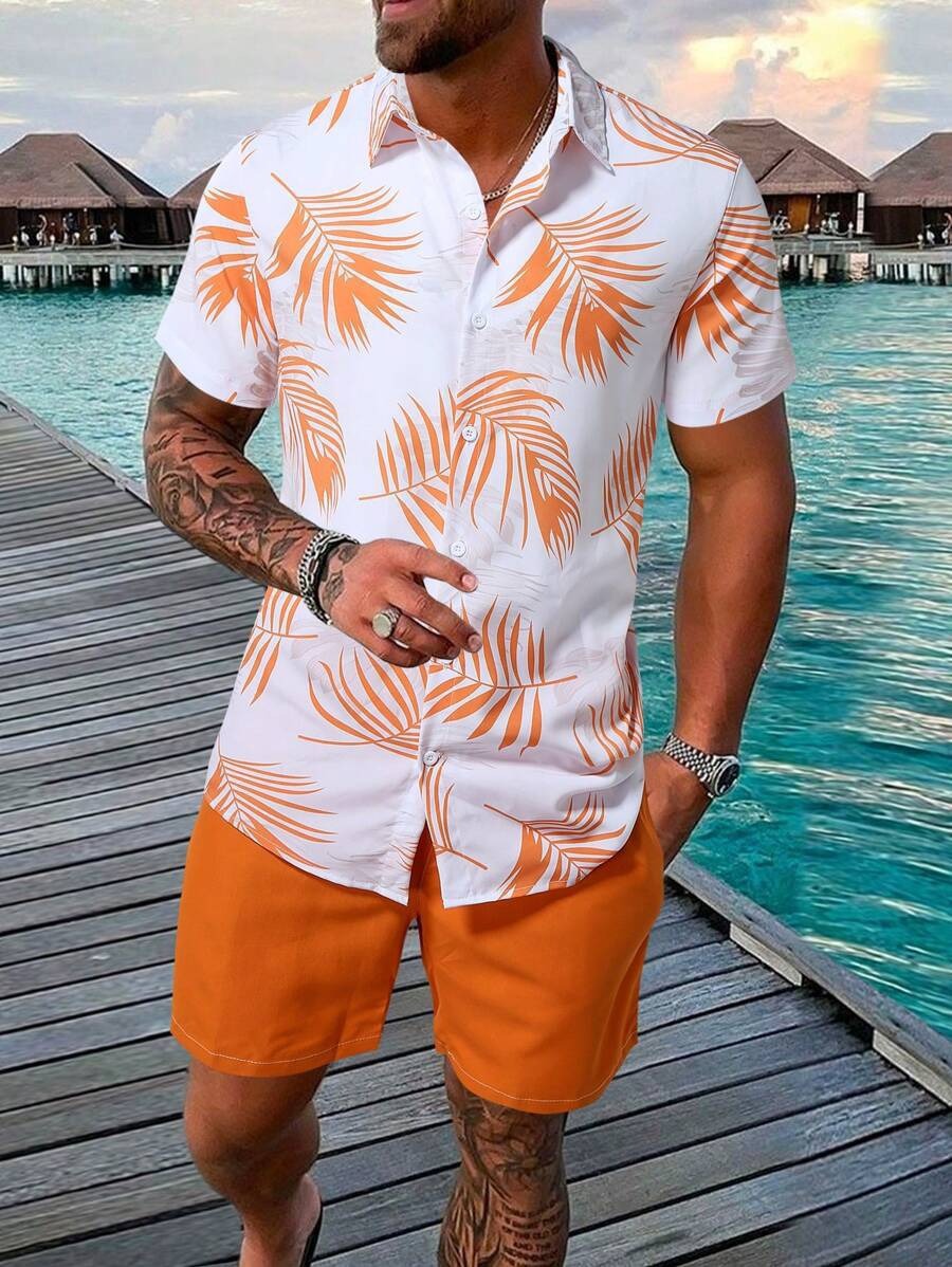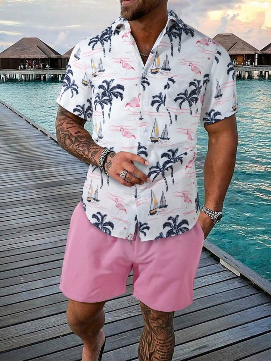 Men's Coconut Tree Print Beach Travel Shirt Shorts Set