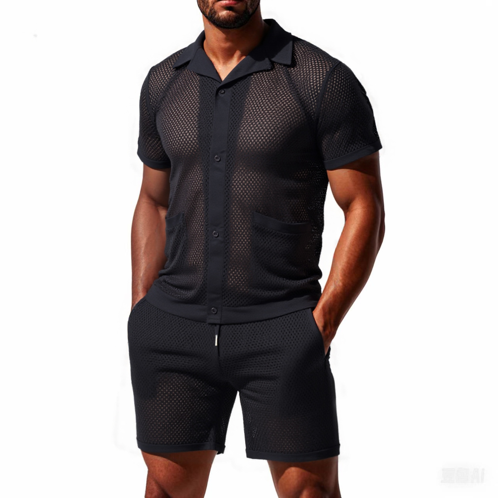 This men's solid color hollow shorts suit combines modern style with breathable comfort. Crafted with lightweight fabric and featuring a hollow design, it ensures excellent ventilation, making it ideal for warm weather. The solid color offers versatile styling options, suitable for casual outings or relaxed social events. Designed for a comfortable fit, this suit balances fashion and functionality for the discerning wearer.